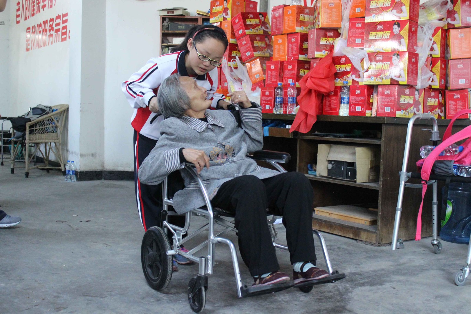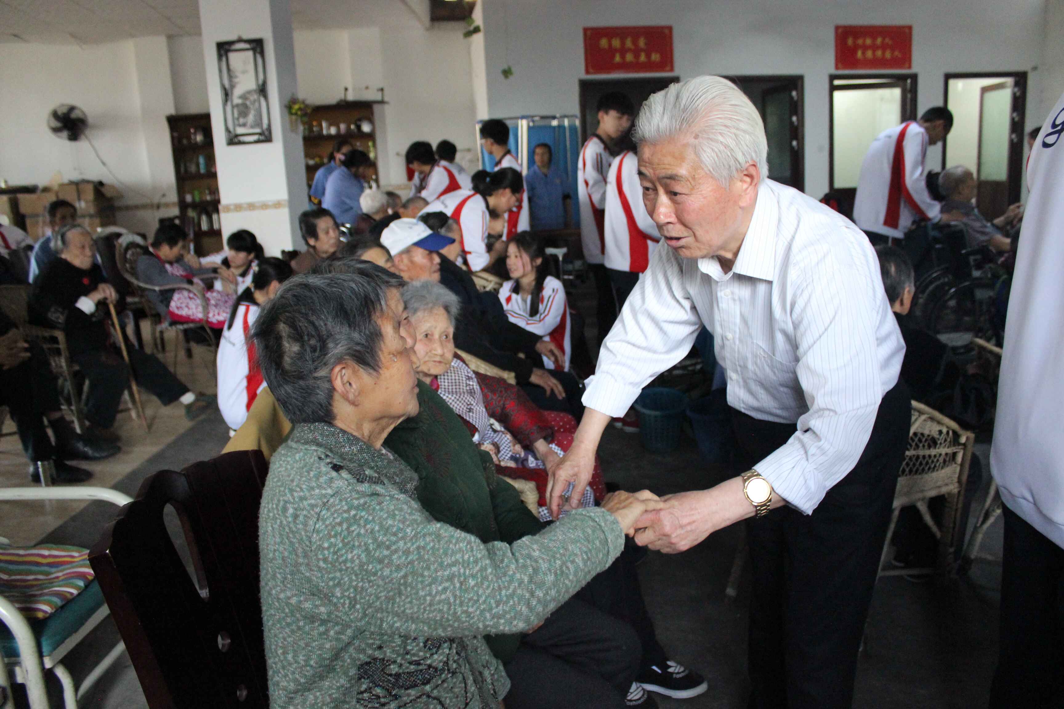 “百善孝為先”孝敬老人是中華民族優(yōu)良的傳統(tǒng)美德。迎著四月?tīng)N爛的陽(yáng)光,更生學(xué)校團(tuán)委,學(xué)生會(huì)師生一行30人于4月20日下午走進(jìn)牟子鎮(zhèn)養(yǎng)老院。開(kāi)展“關(guān)愛(ài)老人,服務(wù)社會(huì)”公益活動(dòng),師生們?yōu)槊课焕先藴?zhǔn)備了一份禮物,也為所有老人們帶去了精心準(zhǔn)備的節(jié)目,在活動(dòng)現(xiàn)場(chǎng),團(tuán)委學(xué)生會(huì)的同學(xué)們?yōu)槔先藗冄莩t歌,為每一位老人按摩,陪老人聊天。老人們非常感動(dòng),有的甚至眼含熱淚。他們說(shuō)“我們?nèi)鄙俚牟皇俏镔|(zhì),缺少的是內(nèi)心精神的陪伴?!?/span>