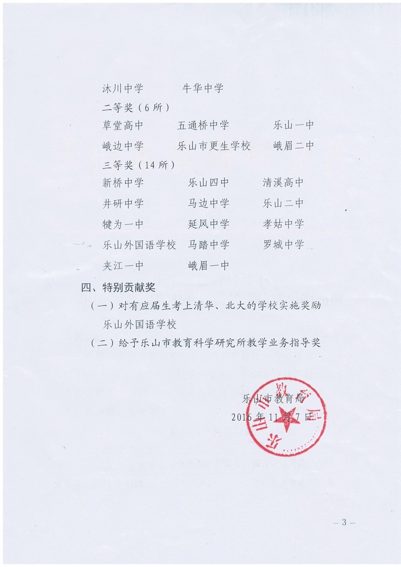 2016年11月10日-11日,樂山市教育局在沐川召開了全市高中高中教育工作會,更生學(xué)校以總分120分又獲高中教育質(zhì)量評估一等獎。這是更生學(xué)校連續(xù)第四年獲市教育局高中教育質(zhì)量綜合評估一等獎。今年市上首次對藝體生雙上線情況進(jìn)行評估,更生學(xué)校獲二等獎。多年來更生學(xué)校堅持以質(zhì)量求生存,以特色求發(fā)展,一心一意抓質(zhì)量,抓校風(fēng)建設(shè),學(xué)校教風(fēng)學(xué)風(fēng)優(yōu)良,教育教學(xué)質(zhì)量屢創(chuàng)佳績。