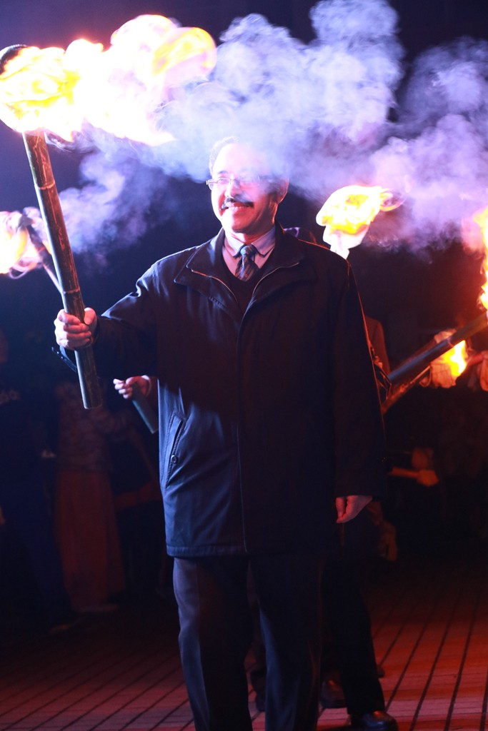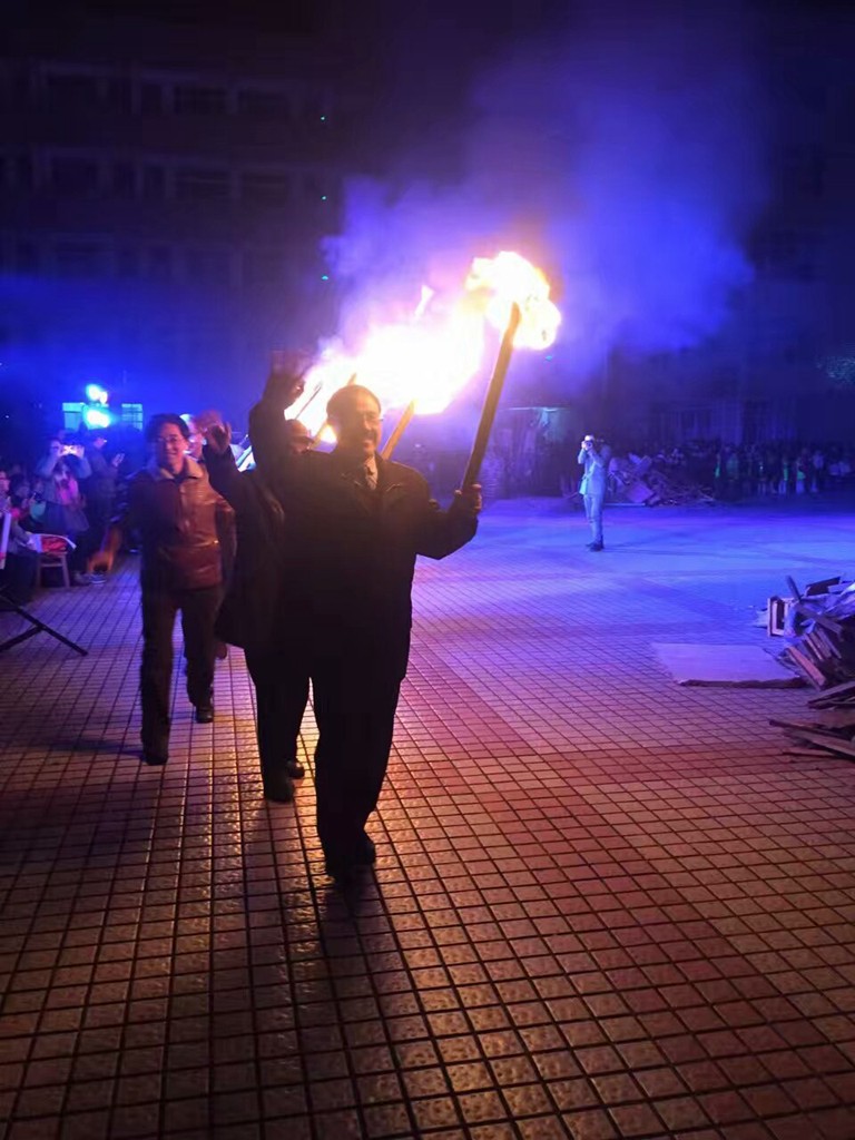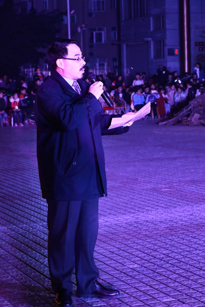 晚上7點,絢麗的煙花劃過夜空,為黑夜披上了彩妝,篝火晚會在阮平校長的新年致辭中拉開了帷幕。阮平校長在致辭中回顧了2016年學(xué)校取得的豐碩的成果,同時展望未來,祝福全校師生、全體更生校友擁有更美好的明天。