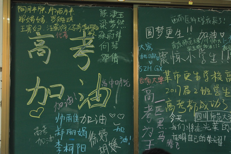 清晨的第一縷陽(yáng)光剛照進(jìn)學(xué)校,校園電子屏幕就打出阮平校長(zhǎng)對(duì)高三同學(xué)的祝福:勤學(xué)苦讀十幾年,理想大學(xué)存心間;六月七八決戰(zhàn)時(shí),揚(yáng)鞭催馬我亮劍;披荊斬棘勇往前,沉著揮灑戰(zhàn)績(jī)添;好運(yùn)當(dāng)頭拓新疆,錦繡前程今開先!祝同學(xué)們2017年高考旗開得勝,馬到成功。除此之外,許多已畢業(yè)的更生校友對(duì)高三的各種祝福也在電子屏幕上滾動(dòng)播出,如正在北京科技大學(xué)攻讀博士的彭青松發(fā)來(lái)祝福:不苦不累,高三無(wú)味;不拼不博,高三白活;高考不退卻,逆襲全世界。又如遠(yuǎn)在韓國(guó)春川翰林大學(xué)留學(xué)的劉謙預(yù)祝大家出師告捷,金榜題名。再如2004屆考入山東大學(xué)的校友李燕,剛剛結(jié)束珠峰EBC環(huán)線徒步大本營(yíng)活動(dòng),就發(fā)來(lái)祝福,祝師弟師妹們沉著冷靜,積極樂(lè)觀,勇攀高峰,再創(chuàng)輝煌。迄今為止,已收到校友祝福上百條。