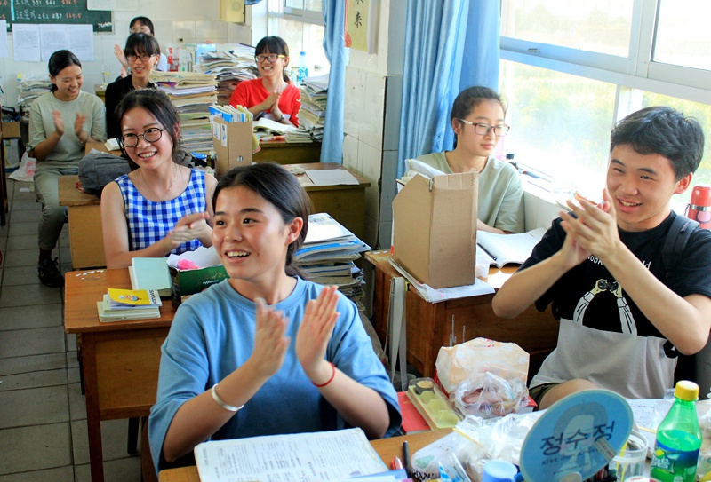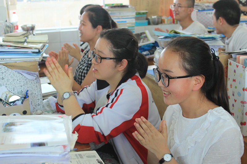 晚上六點(diǎn)四十,學(xué)校行政助理阮頓和行政辦主任王曉勤挨著走進(jìn)高三年級(jí)每間教室,通過(guò)簡(jiǎn)單的游戲釋放壓力,鼓勵(lì)同學(xué)們可以做到比你想象中更好。阮頓轉(zhuǎn)達(dá)了曾經(jīng)在更生畢業(yè)、現(xiàn)在在更生工作的學(xué)長(zhǎng)學(xué)姐們?yōu)橥瑢W(xué)們送上的祝福,還向同學(xué)們傳授了快速入眠的“秘訣”,向每個(gè)班分發(fā)了更生學(xué)校特別的“高考神油——風(fēng)油精”,幫助同學(xué)們?cè)诳荚囍扒逍杨^腦。同時(shí),高三各班主任組織同學(xué)們開展了班級(jí)聯(lián)誼活動(dòng),有文藝表演、唱歌、舞蹈、朗誦和師生互贈(zèng)離別感言等?;顒?dòng)場(chǎng)景溫馨感人,熱鬧歡快,有序有度。