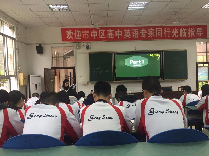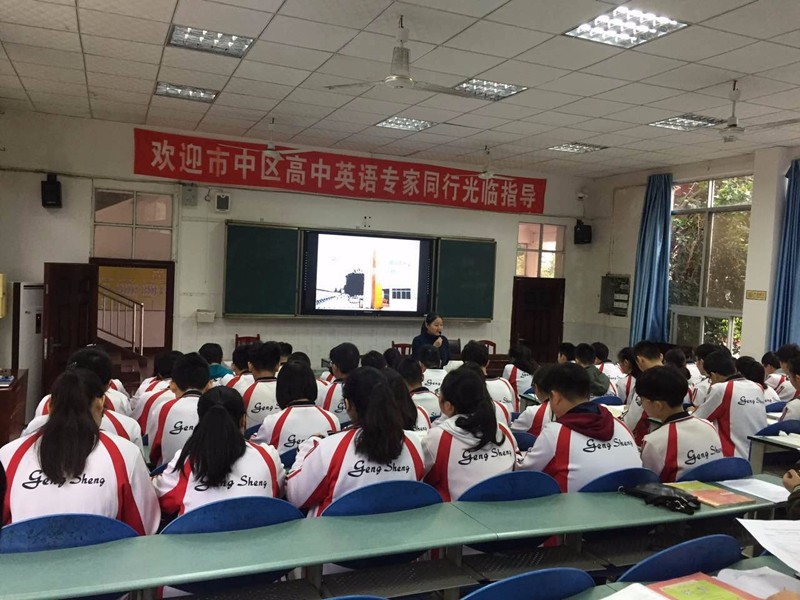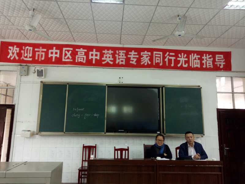 2017年10月18日,在市中區(qū)進修校英語教研員龔老師和劉老師的組織下,新橋高中、樂山四中和更生學校高中英語教師在更生學校開展了高中英語教研活動。本次教研活動第一階段是集體聽課,分別由更生學校高二年級英語教師曾倩(高二必修五module5 reading)和高三年級英語教師張舒(高三詞匯復習 unit27 shopping)進行了精彩的課堂展示。聽課結束后,老師們對英語教育教學進行了熱烈的研討。曾倩和張舒分別對所授課堂內容進行了簡單的說課,三所學校代表和教研員分別對兩位老師的課進行了精彩的點評,認為兩位老師對課堂的駕馭能力較好,教學流程熟練,教學內容由淺入深,引導學生逐步對知識的理解和掌握。高三復習課方法新穎,首次以話題為中心開展詞匯教學,夯實基礎,學生課堂呈現(xiàn)非常好。