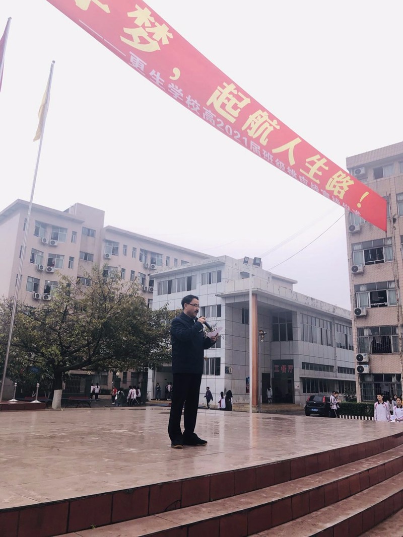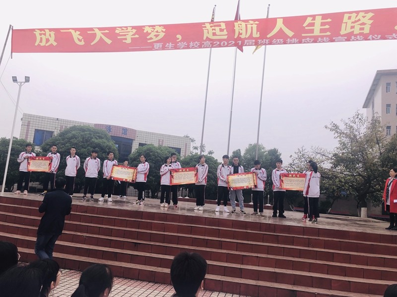 為了建設(shè)優(yōu)良學(xué)風(fēng),營造各班良好的學(xué)習(xí)氛圍,激發(fā)同學(xué)們積極拼搏的熱情,更生學(xué)校高一年級舉行了主題為“放飛大學(xué)夢,起航人生路”的班級挑應(yīng)戰(zhàn)宣戰(zhàn)儀式。