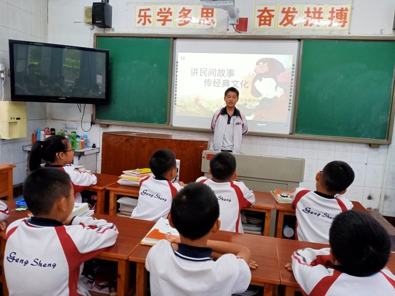 民間故事,口耳相傳的經(jīng)典,老百姓智慧的結(jié)晶。為了全面提高學(xué)生語(yǔ)文綜合素養(yǎng),激發(fā)學(xué)生對(duì)民間故事的閱讀熱情,推動(dòng)書(shū)香班級(jí)活動(dòng)有效開(kāi)展,10月9日,更生學(xué)校五年級(jí)舉行了“講民間故事,傳經(jīng)典文化”的比賽活動(dòng)。