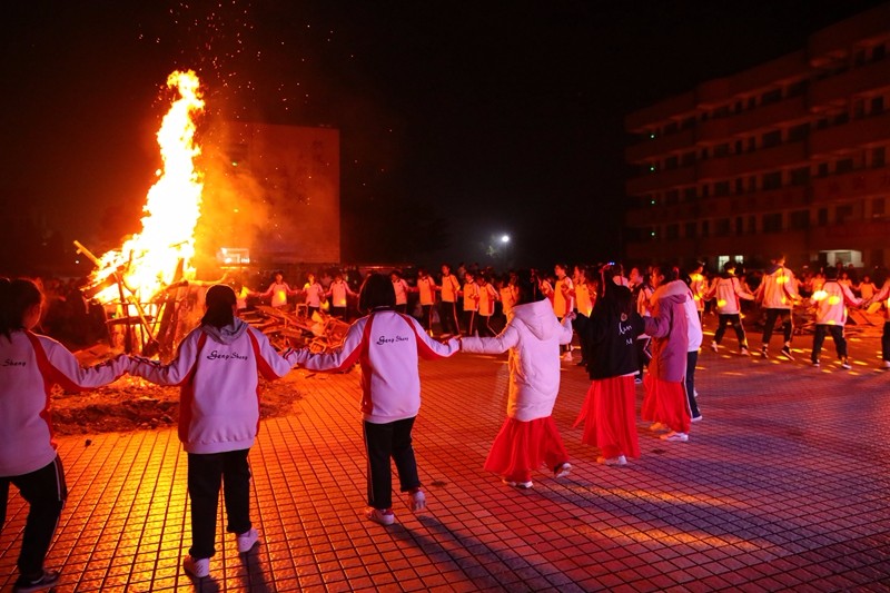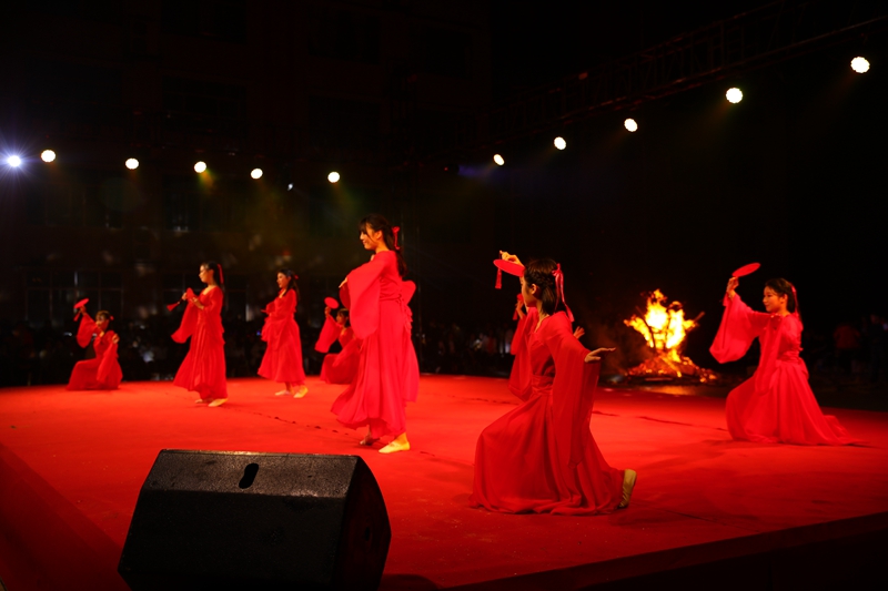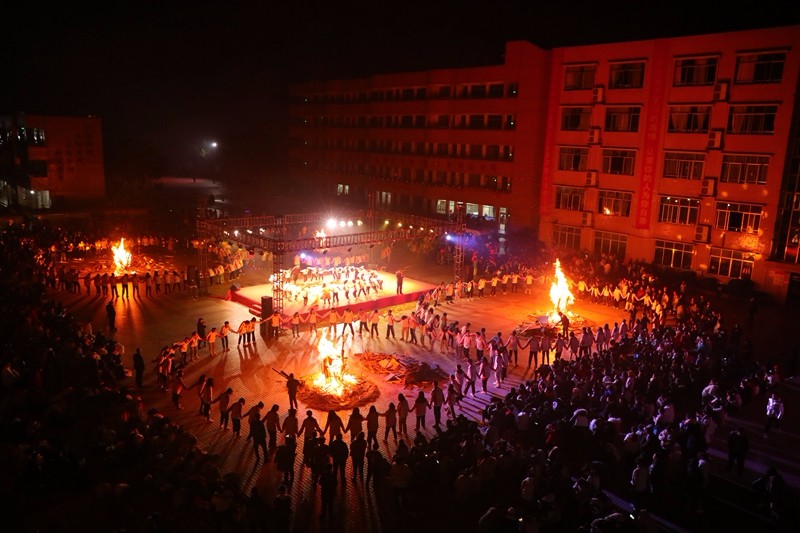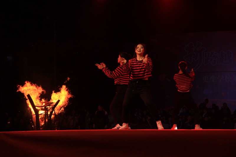 在整場晚會中穿插了5場最具更生特色的達體舞表演,師生們圍繞著四堆熊熊燃燒的篝火踏歌而舞,火光映照著師生們的張張笑臉,青春和夢想在星月交映下飛揚。