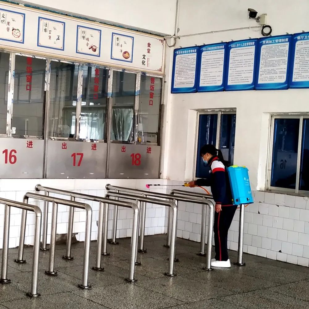 自疫情爆發(fā)以來,更生學校后勤處每天都安排人員對食堂、值班室、教學樓、廁所等公共區(qū)域進行全方位、全覆蓋、無死角的清潔消毒工作。近期還專門組織人員對學校所有教室、辦公室和寢室的空調(diào)進行了清洗和消毒。