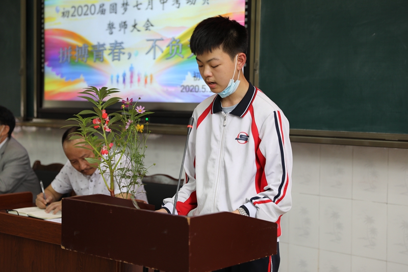 在熱烈濃重的氛圍下,老師們和同學(xué)們發(fā)出鏗鏘誓言。老師們說:我們將精誠團(tuán)結(jié)通力合作,將刻苦鉆研潛心備課,將為你們保駕護(hù)航,將為你們搖旗吶喊,與你們同甘共苦,與你們風(fēng)雨同舟。同學(xué)們說:我們一定自尊自愛自律自強(qiáng),一定戒驕戒躁勤學(xué)苦練,一定攻堅克難百折不撓,我們一定珍惜六十天拼搏六十天,為母校添光彩。