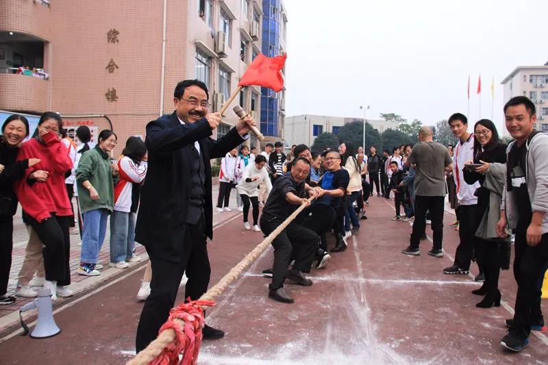 伴隨著阮平校長的一聲令下,對戰(zhàn)雙方隊員立即投入到了緊張而又激烈的比賽之中。選手們個個咬緊牙關、雙手緊握繩子、雙腳加足馬力、身體往后傾斜,心往一處想、勁往一處使,比團結(jié)、比風格、比水平、比實力,運動場上加油聲、歡呼聲響成一片,校園里洋溢著全民健身的喜悅和團結(jié)一致、拼搏向上的精神。