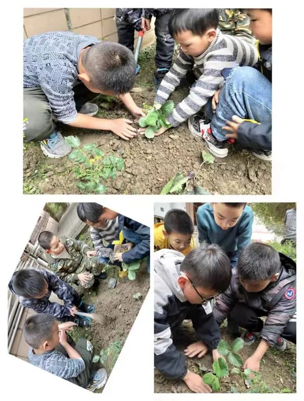 孩子們個個動手、不怕臟累、齊心合作,不一會兒,就在地里種下了一顆顆小苗,手臟了、衣服臟了、甚至臉也臟了,但孩子們個個洋溢著歡快的笑容,爽朗的笑聲在校園飛揚。