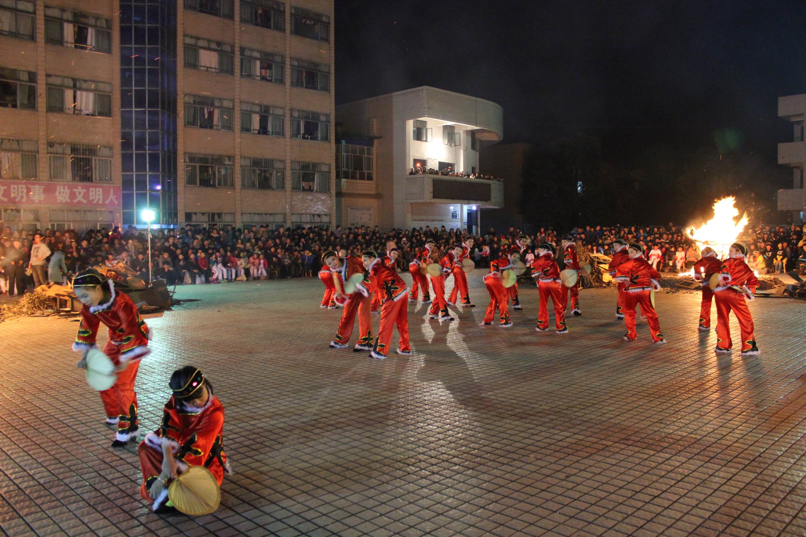 2012年12月29日晚上7點(diǎn),更生學(xué)校全校2600多名師生歡聚在旗臺廣場,舉行主題為“2013·魅力更生”的第十八屆“火鳳凰”藝術(shù)節(jié)迎新篝火晚會。