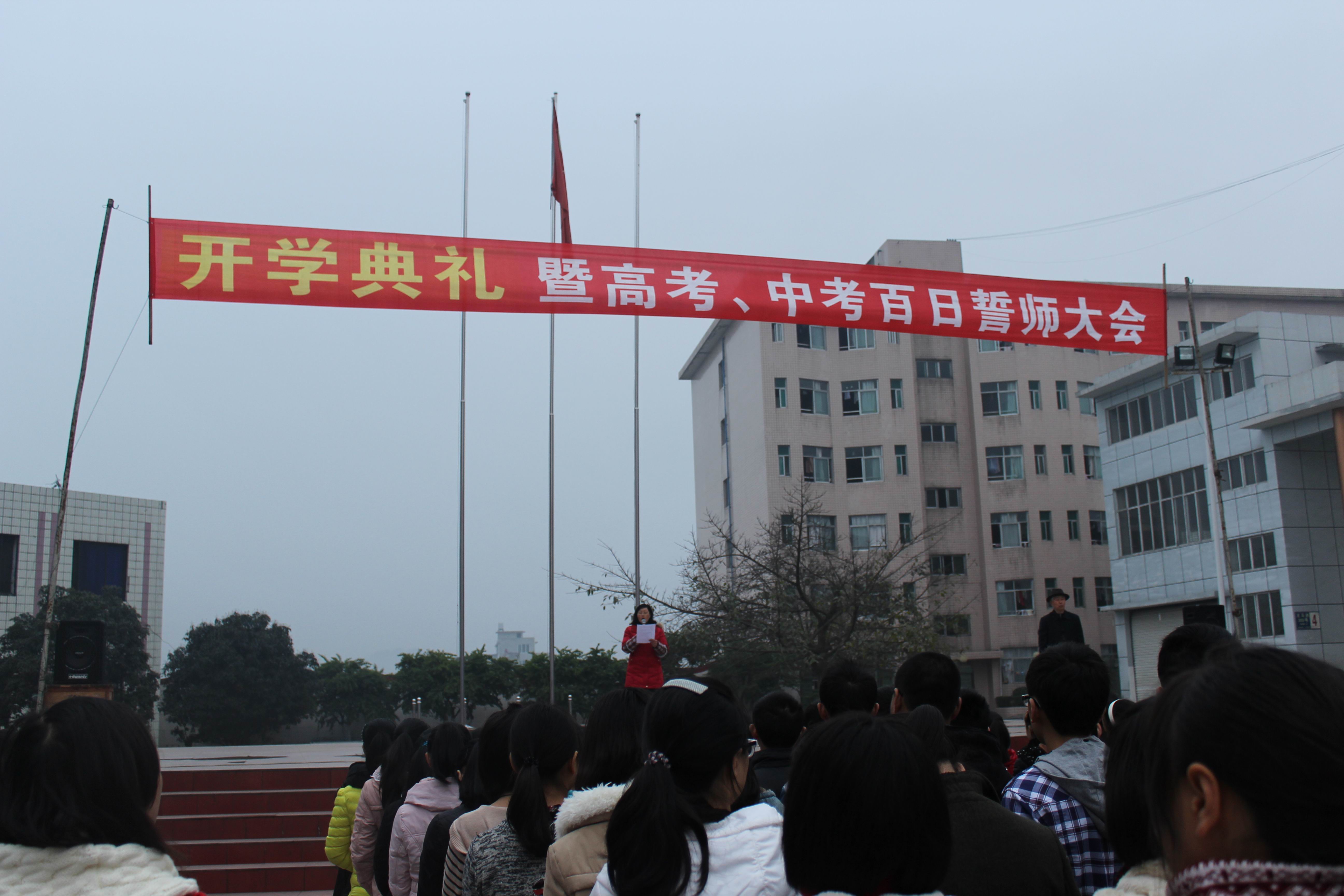 春回大地,萬象更新,2月25日上午更生學(xué)校全校師生共2500余人齊聚旗臺(tái)廣場(chǎng)。在嘹亮的國(guó)歌聲中,開學(xué)典禮暨高考、中考百日誓師大會(huì)拉開了序幕。本次開學(xué)典禮由訓(xùn)導(dǎo)處王維璜主任主持。