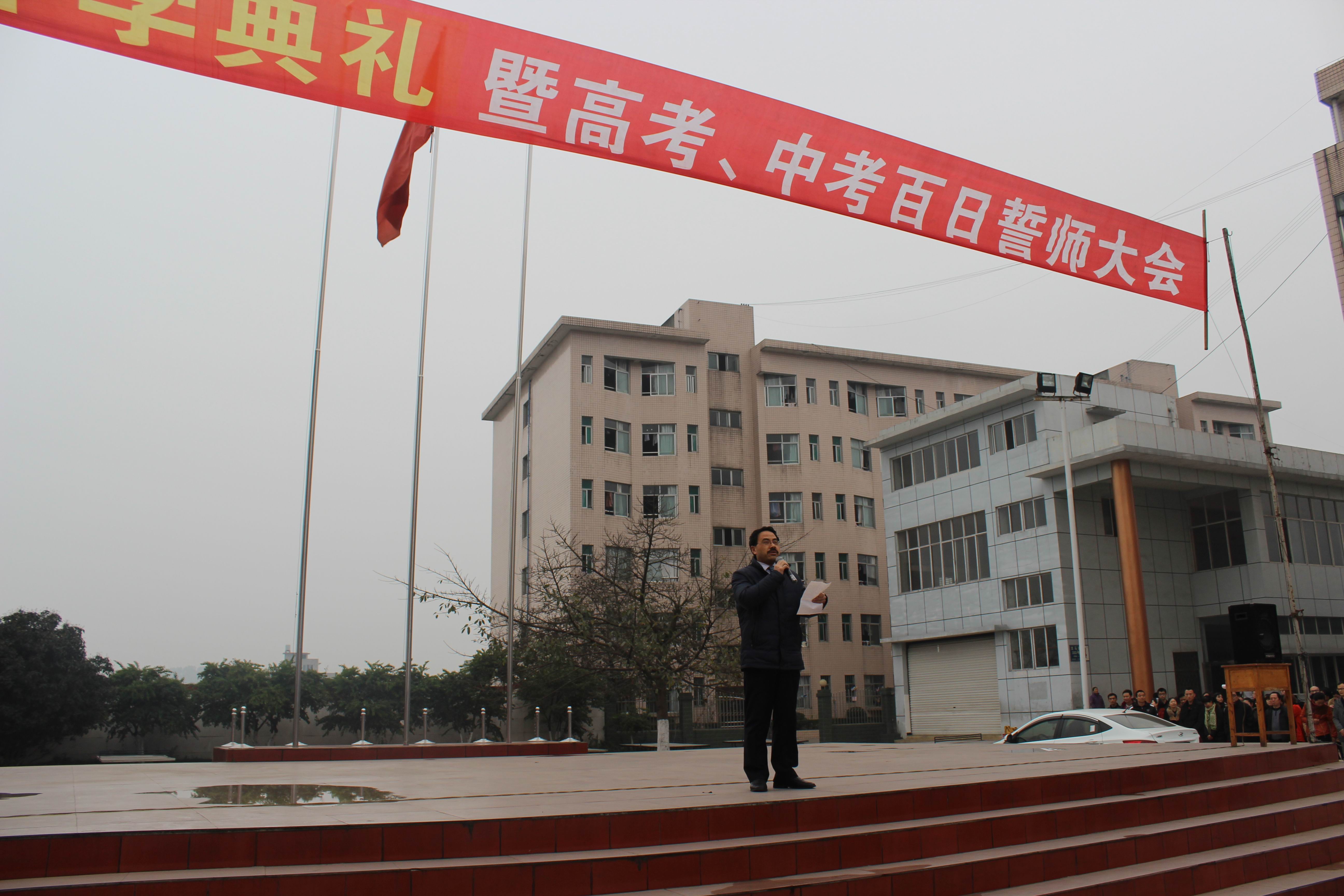 圖為阮平校長(zhǎng)在百日誓詞師大會(huì)上為高三、初三的學(xué)生們致詞