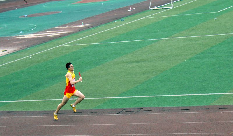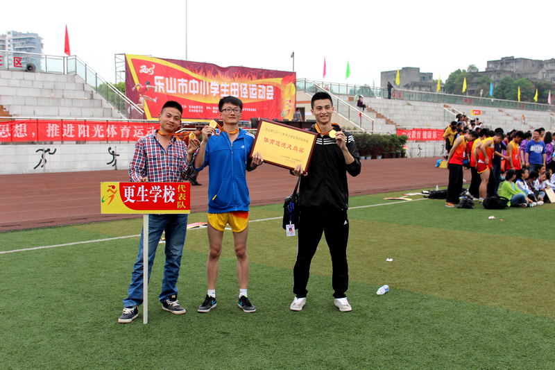國歌奏響,紅旗飄揚。2013年3月30日至31日樂山市中小學生田徑比賽在峨眉一中順利舉行,由各區(qū)縣、各市直屬學校組成的15支代表隊,在運動場上激烈角逐。更生學校代表隊在運動員較少的情況下,在比賽過程中包攬男子中長跑全部金牌:包括男子800米(林培成)、1500米(碾者阿提)、5000米(碾者阿提)該項目打破了市記錄。在男子接力賽上取得我校歷史最好成績,獲得4×100米第四名、4×400米第五名,創(chuàng)造了更生學校新的紀錄。在市中區(qū)參賽的5支高中代表隊當中,更生學??偡峙琶谝?。在閉幕式中,峨眉山市教育局副局長黃光君,對在本屆運動會上唯一打破市紀錄的更生學校學生(碾者阿提)給予了通報表揚,獲得會上雷鳴般掌聲。