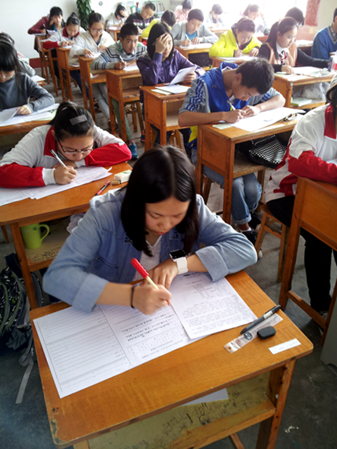 考場內(nèi),考生們奮筆疾書,全然沉浸在自己的考試精神世界。