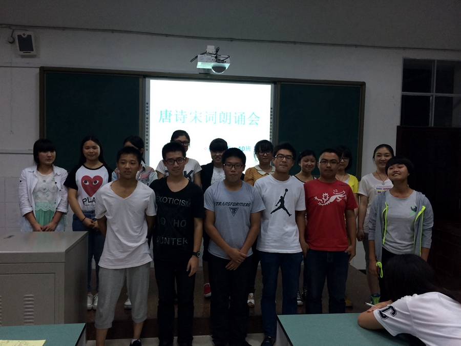 5月12日,繼高一·三班、八班、十一班《孔雀東南飛》課本劇表演活動之后,二班、十班利用晚自習(xí)時間在學(xué)校階梯教室舉辦了《唐宋詩詞》朗誦會。共有38名同學(xué)各自攜樂開嗓參加此次朗誦會。