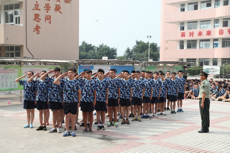 我校高一新生在教官的帶領(lǐng)下認(rèn)真、刻苦訓(xùn)練