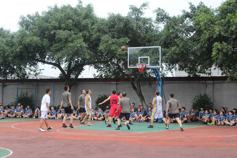 我校帶隊(duì)老師和教官們進(jìn)行籃球友誼賽