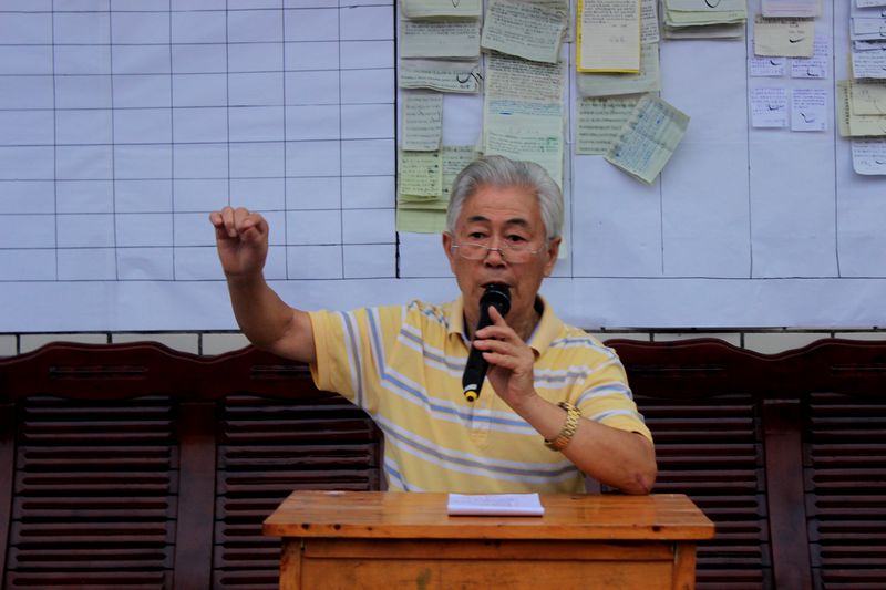我校訓(xùn)導(dǎo)處老王主任在給新生們講防火安全知識