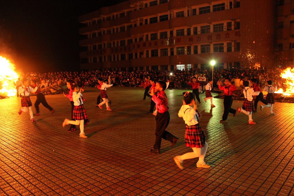 晚上7點(diǎn),篝火晚會(huì)在絢麗的煙花中中拉開帷幕。阮平校長首先致辭,獨(dú)特的配樂詩朗誦,博得全場陣陣掌聲。隨后全校各部門、各年級(jí)選出的20名火炬手,點(diǎn)燃會(huì)場三堆篝火,伴隨熊熊的篝火和同學(xué)們熱烈的歡呼聲,會(huì)場顯現(xiàn)一片喜慶景象。