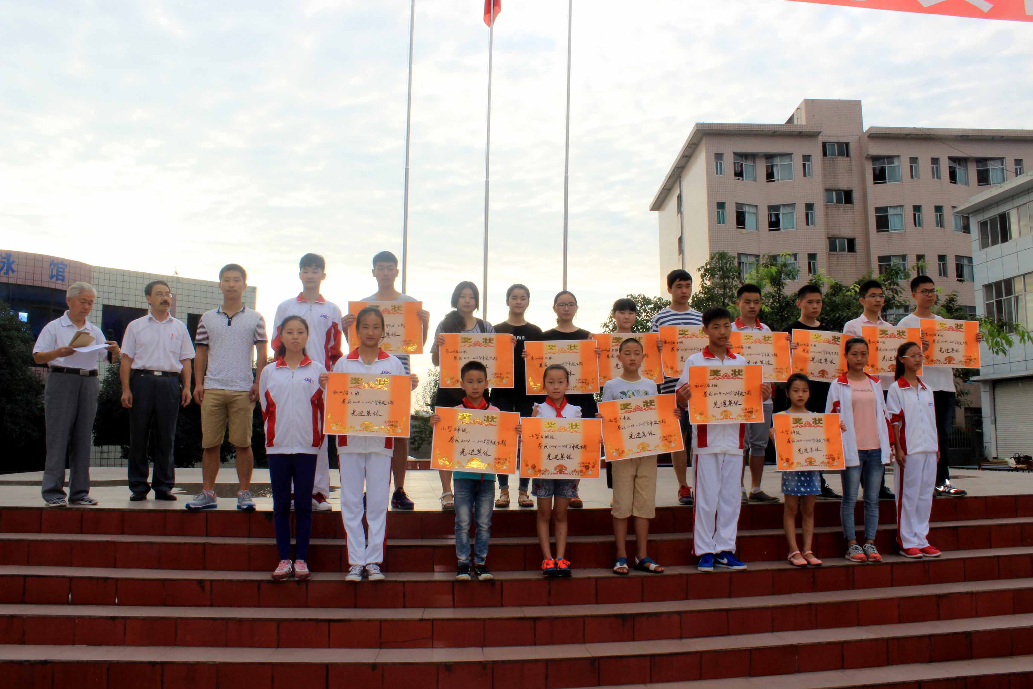 開學典禮在雄壯的國歌聲中拉開了序幕,首先由訓導處主任王維璜宣布上學期“優(yōu)秀班集體”和“寢室文明之星”名單,行政辦主任王曉勤宣布上學期獲得獎學金學生名單,并由阮平校長給獲獎集體及學生發(fā)獎。